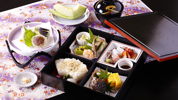 松花堂弁当彩り豊かに詰め合わせた、奈良の旬の味覚をひと箱に。 |