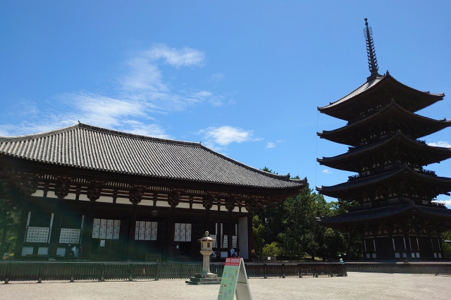 当ホテルから徒歩10分 本尊は中金堂の釈迦如来。中金堂、五重塔、東金堂、南円堂、国宝館が見どころ。特に、国宝館に収蔵されている阿修羅像を含む八部衆立像や、三重塔は必見です。 |