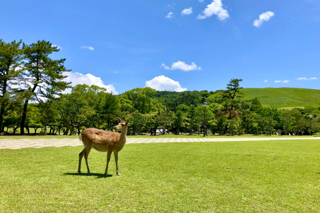 当ホテルから奈良公園バスターミナルまで徒歩5分 緑の芝生に鹿が遊び、歴史的な社寺が点在する、奈良のシンボル。総面積はおよそ660ha(東西約4km、南北約2km)。奈良公園バスターミナルの屋上は、春日山原始林から東大寺・興福寺までを一望できる、ビューポイントです。 |