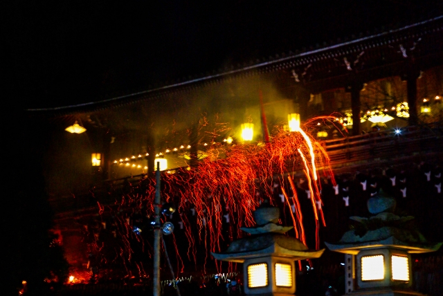東大寺二月堂の「お水取り」(修二会-しゅにえ-)開催日:3月1日~14日 僧侶たちが苦行を実践し、二月堂の本尊・十一面観音に、国家安寧を祈る祈願法要です。752年に始まって以来一度たりとも欠かしたことのない不退の行法です。期間中、19時の大鐘を合図に「お松明」に点火(但し、12日は19時半、14日は18時半)。3月12日の深夜(13日の午前1時半頃)に、若狭井からお香水を汲み上げる儀式が行われます。 |